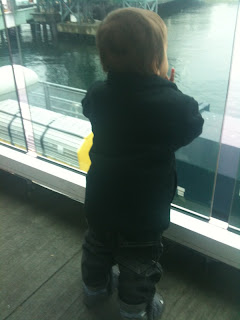 To get here we roughed it. No driving this day. We parked at the Port Orchard library, walked about 50 feet to the foot ferry dock, caught the foot ferry (passenger boat) to the Bremerton/Seattle ferry, caught the Bremerton/Seattle ferry to Seattle, walked to the Aquarium, walked to Pike's Place Market, walked to Ivar's (clam chowder, losers!), walked back to the Bremerton/Seattle ferry, caught it to Bremerton, caught the foot ferry back to Port Orchard and then walked 50 feet to our car. It took nine hours...my feet hurt, the kids were tired but it was great. And the weather God's decided to grant us some pity and not let it rain. I mean, it drizzled...but the mega-downpours that were expected were no where in sight.